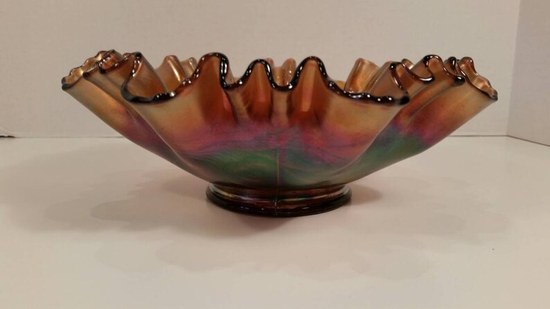 Antique CARNIVAL GLASS DUGAN Footed Ruffled Bowl Cherry | Etsy from i.etsystatic.com Check spelling or type a new query. We did not find results for: Amethyst carnival glass ruffled floral & star pattern bowl. Maybe you would like to learn more about one of these?