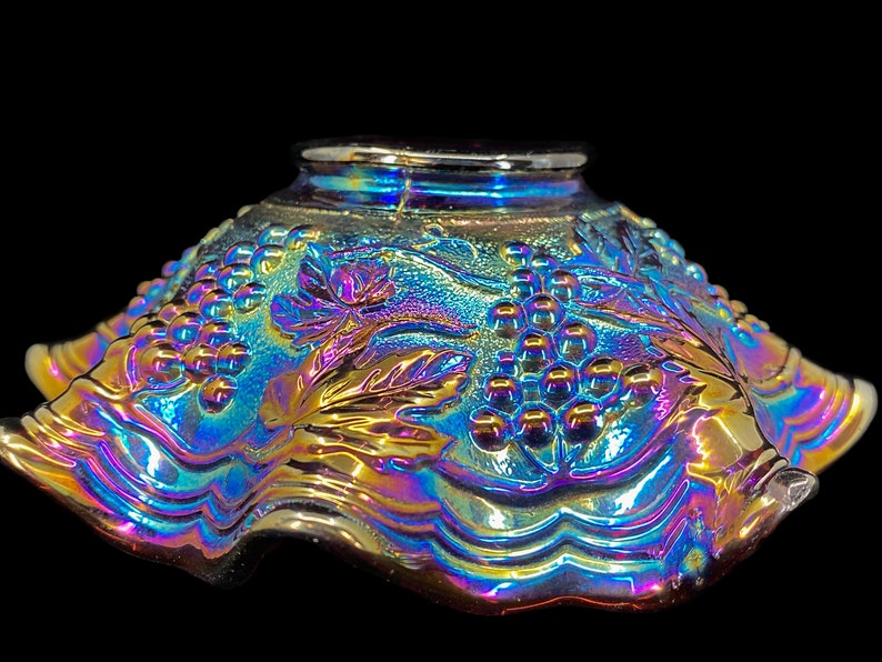 Amethyst carnival glass footed bowl with Dugan grape and ... from i.etsystatic.com Amethyst carnival glass ruffled floral & star pattern bowl. Check spelling or type a new query. Maybe you would like to learn more about one of these? We did not find results for: