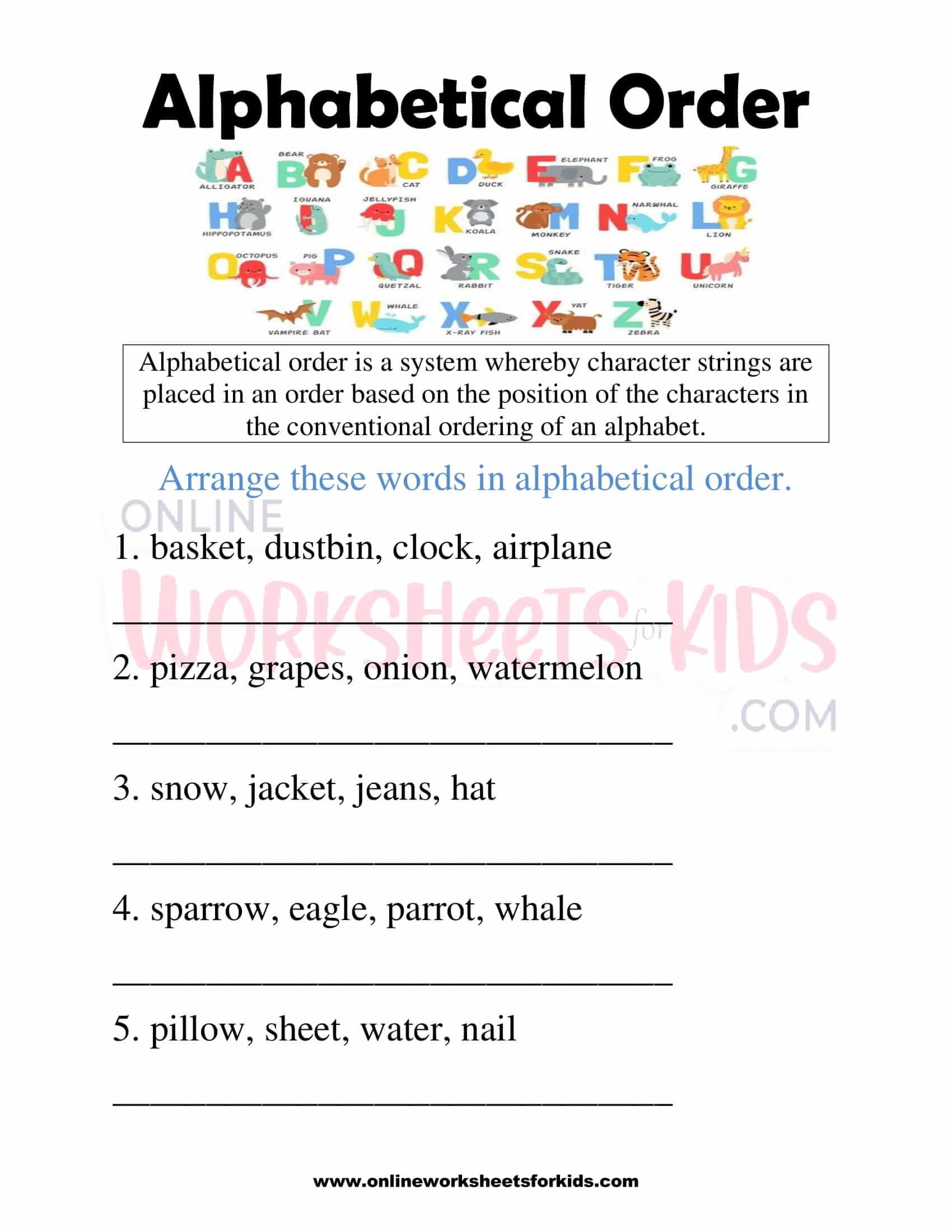 Early Level Alphabetical Order Activity Teacher Made from images.twinkl.co.uk Once you know the alphabet (abcdefghijklmnopqrstuvwxyz) it . Unnatural the dictionary lists all entries in the alphabetical order. You can save the results in a text or word doc type . Abc or alphabetical order | english grammar & composition grade 2 | periwinklehey kids,in this animated video by periwinkle we will learn . The default sorting procedure is to compare each letter from left to right. Alphabetize list is a free online tool that puts any list in alphabetical order. Alphabetize list is a free online tool which will put any list you have into alphabetical order. Alphabetize lists, last names, friends, videos, movies, .